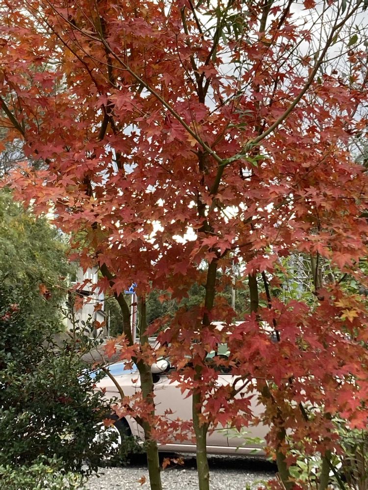去年は赤くならずに散ってしまったけど、今年は遅ればせながら紅葉🍁しました記念撮影😊