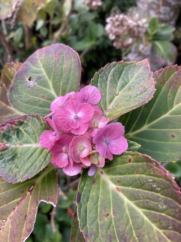 ドライフラワーのような花殻をみると普通のアジサイです。可愛いので記念撮影🩷😍