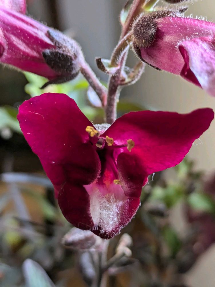玄関の中に入れたキンギョソウを良く見たら中がモフモフでした😄