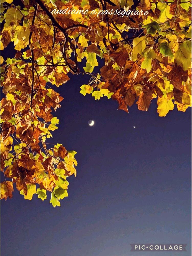 プラタナスの紅葉🍁と🌙と金星⭐️