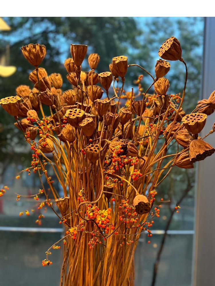2枚目のpic ツルウメモドキと 独特な形のハス🪷のドライとの組み合わせが 斬新で ビックリ‼️です💓