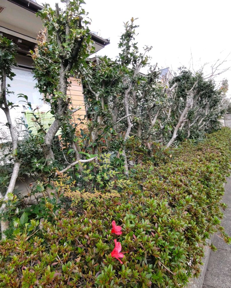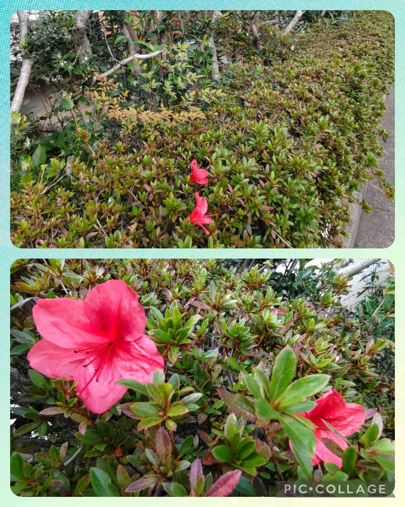 こんばんは🌃🤗我が家のヒイラギの垣根の前にツツジを植えてますが、春でもないのに先日から蕾を3つ付けてまして昨日からパッと開いてます✨✨
