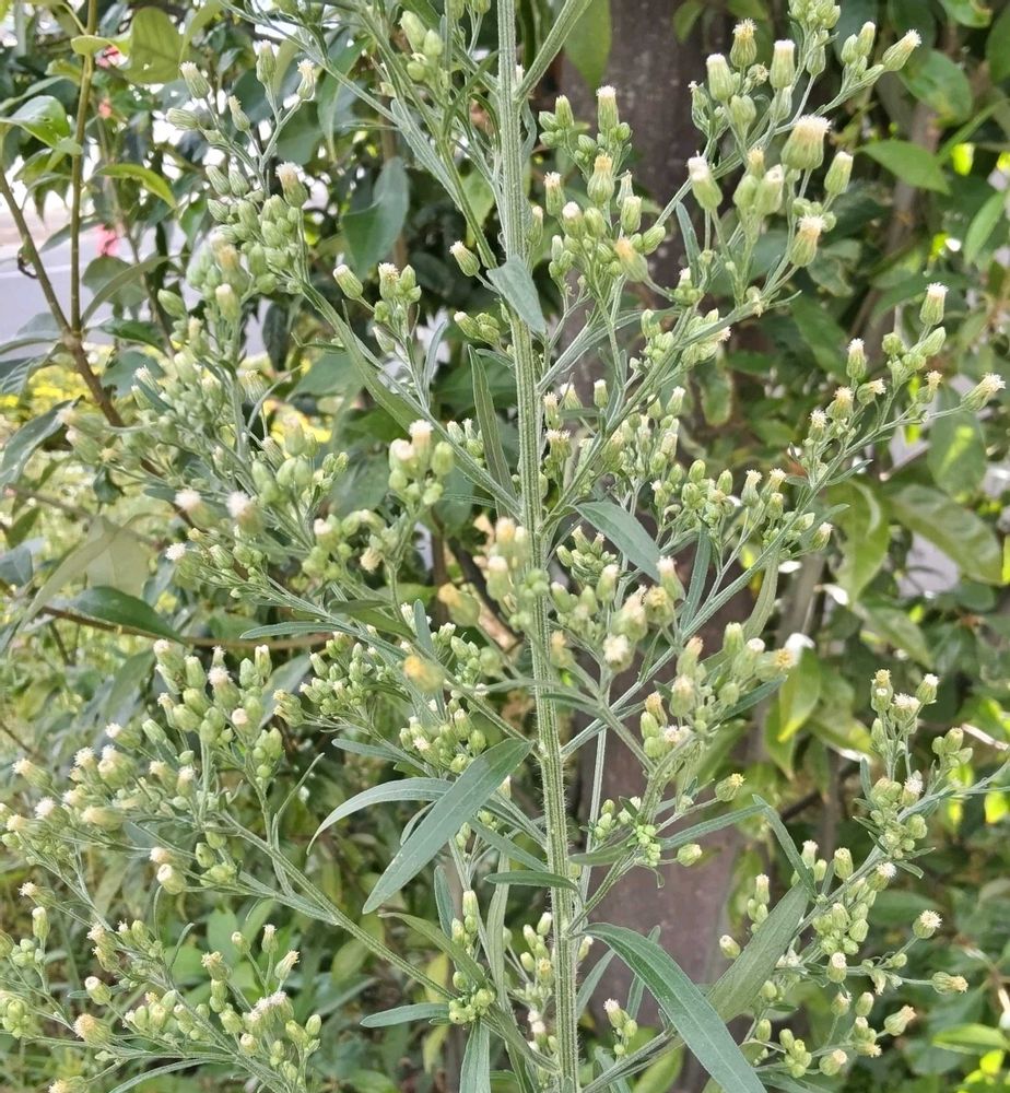 花壇の日陰のところにオオアレチノギクと間違うくらいに大きなヒメムカシヨモギが生えていました‼️