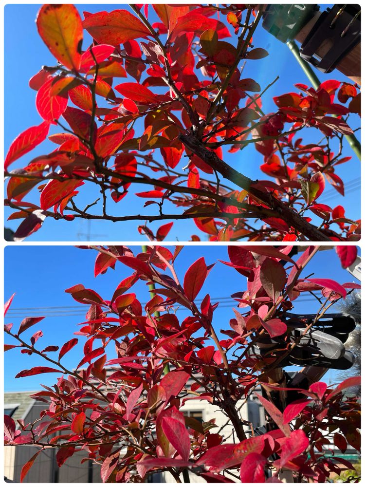 ②鉢植えブルーベリー全体から紅葉しました🪴🫐見上げた紅葉と順光でパチリ