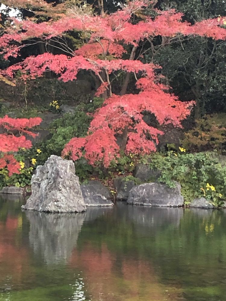 先日、万博公園の日本庭園にて、紅葉した「モミジ」をパチリ!📸🍁😄🤗🌇👌
