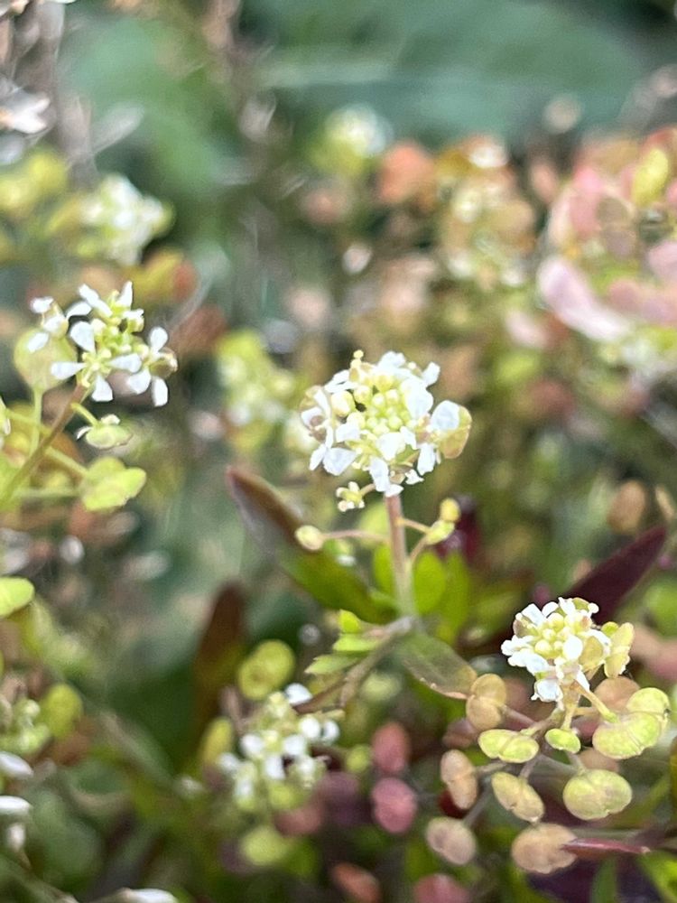 花が少ない季節ですが、道端にマメグンバイナズナの小さな花が咲いておりました。