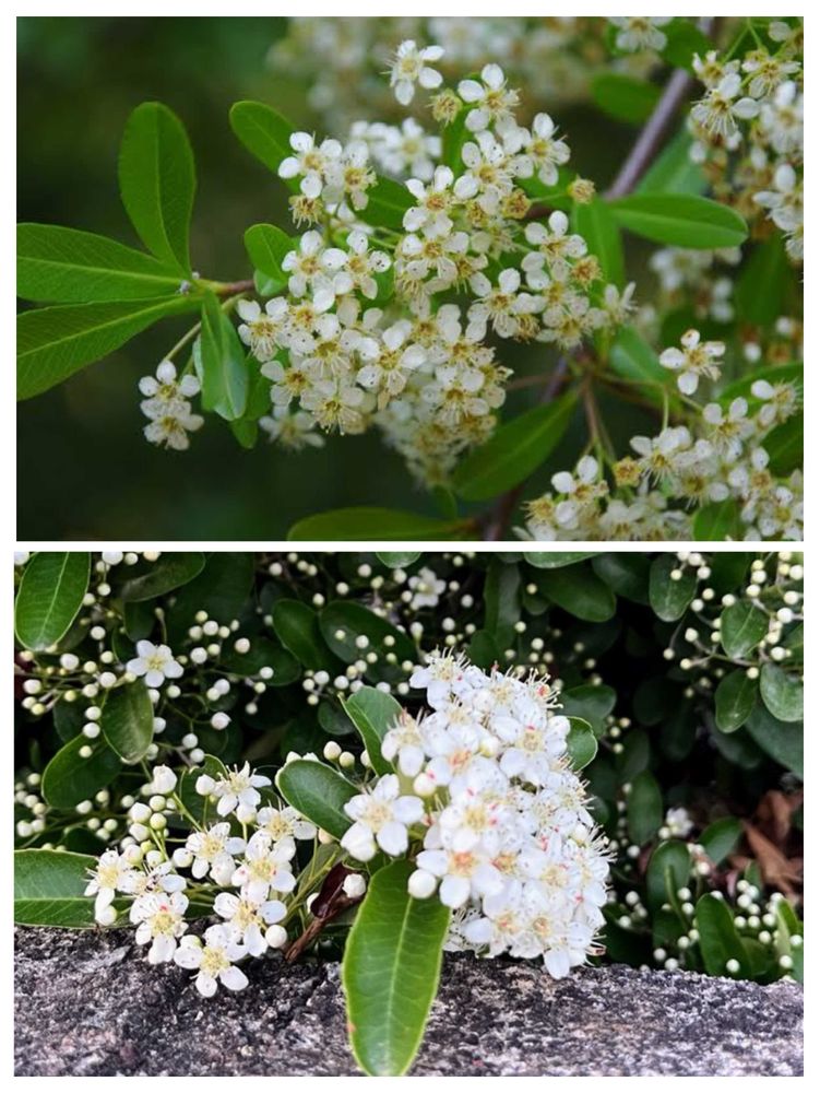 4枚目の写真は、ピラカンサのお花です😆👍🌸🌸 お花も可憐です🤩😍✨🌸🌸🔴🟡 素敵😆💓 可愛らしい🥰👍✨