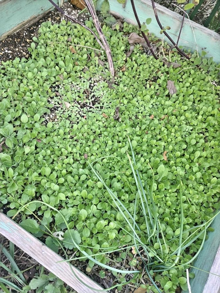 よく咲くペチュニアが咲いています。大量の零れ種がたくさん。ペチュニアかシレネかまだわかりません