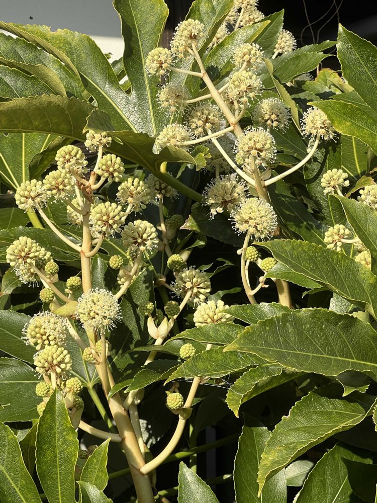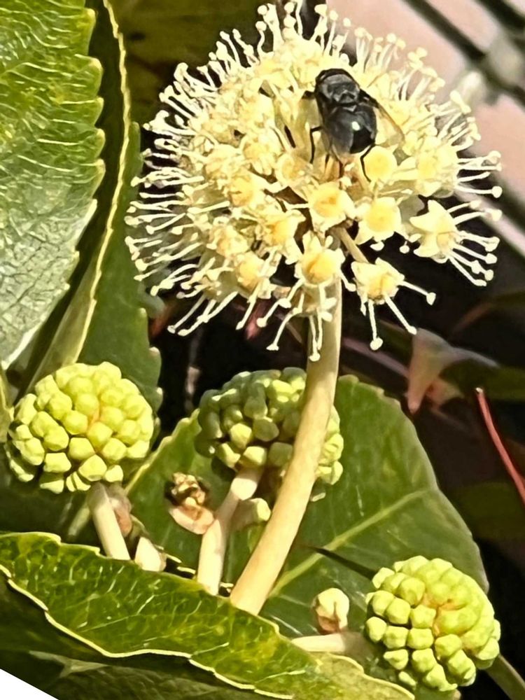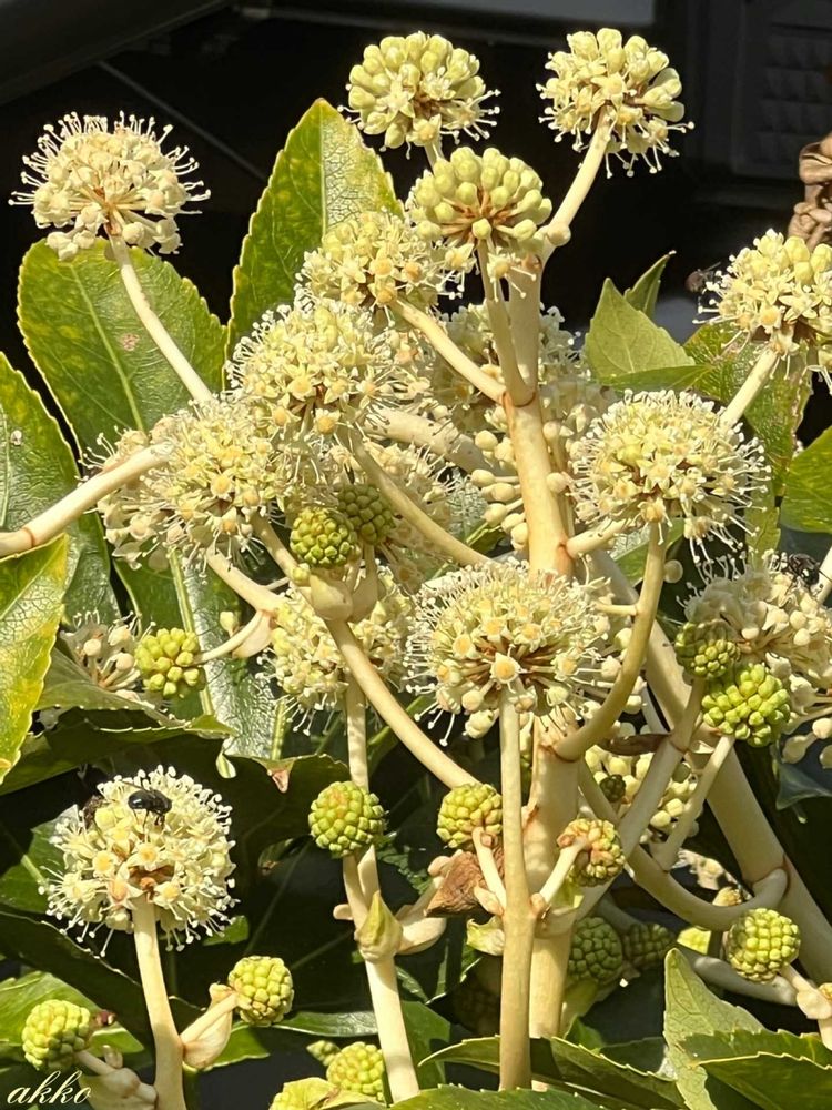 陽気も冬が来たなというものになってきました。八つ手の花の花粉は今の時期には貴重ですね、昆虫達も頼りにしてます、