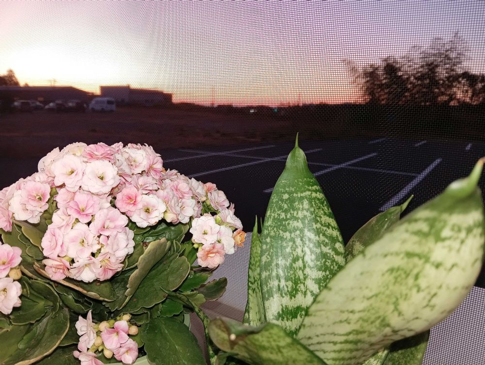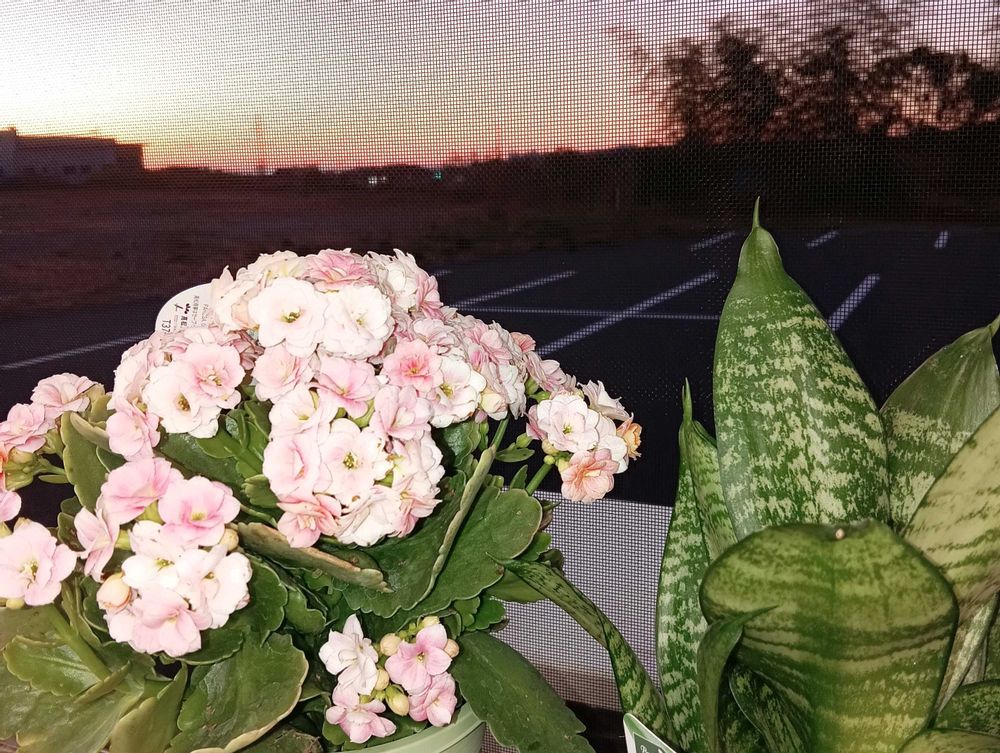 おはよう☀キッチンフラワー💚夜明けが遅く成りましたね、今から目玉焼きの朝食セット🎵