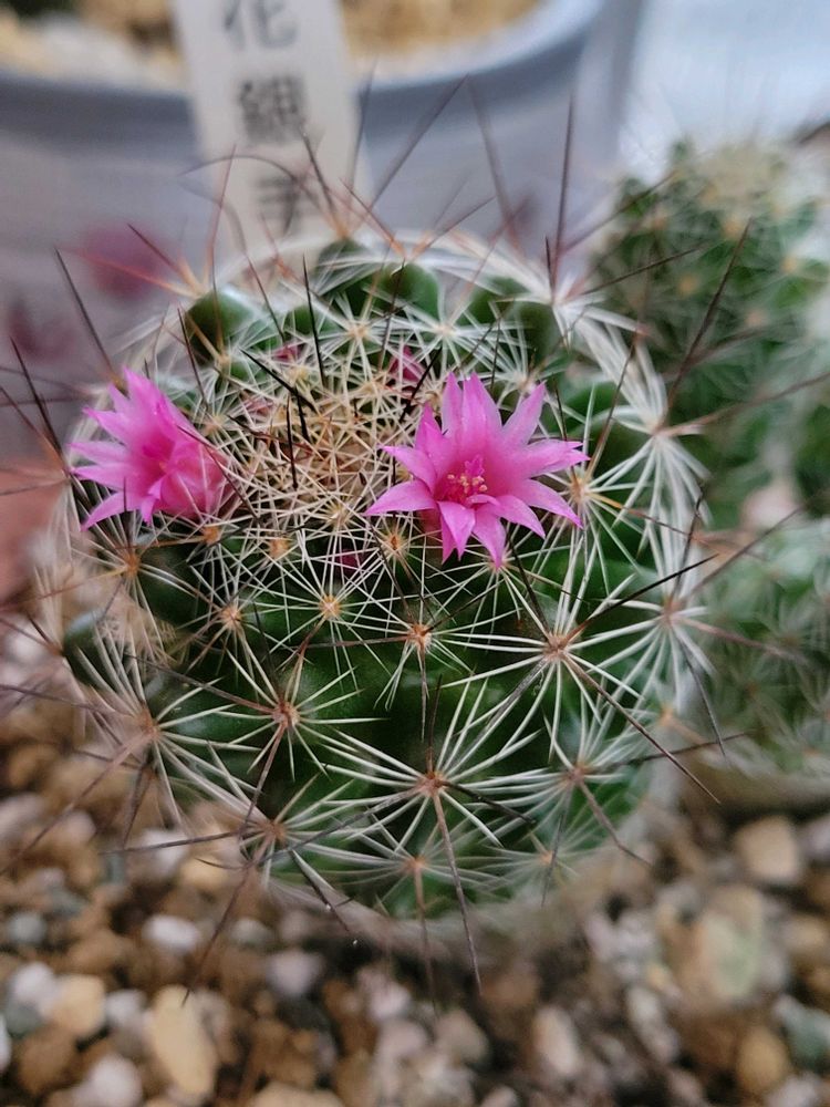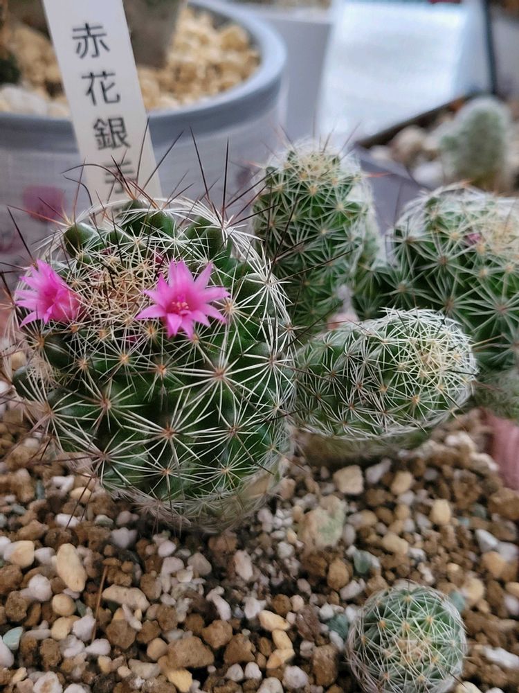 サボちゃん「赤花銀手鞠」花芽が付いてから咲かなくてお部屋に入れたらようやく咲きました🌼🌼(^o^)v