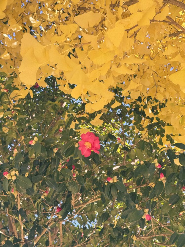 お出かけ先,サザンカ,イチョウの投稿画像