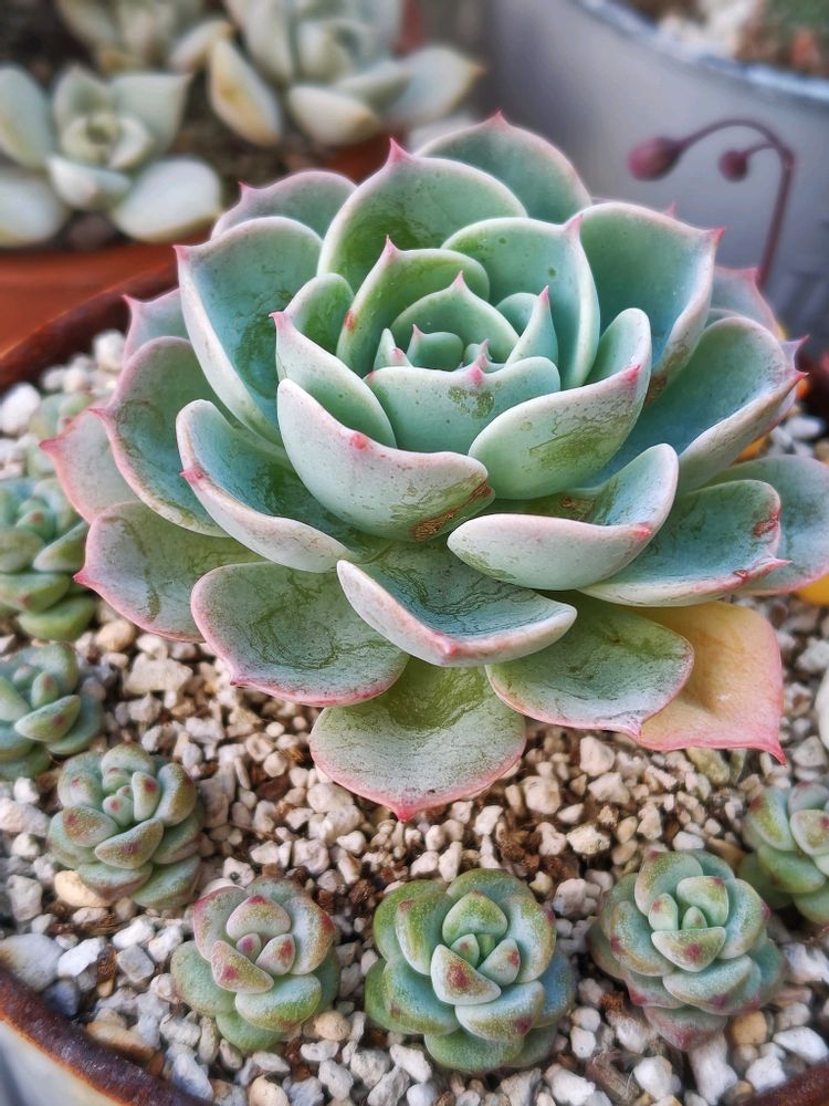 七福神の葉先のポチッとピンクなのが可愛いですね〜😊
