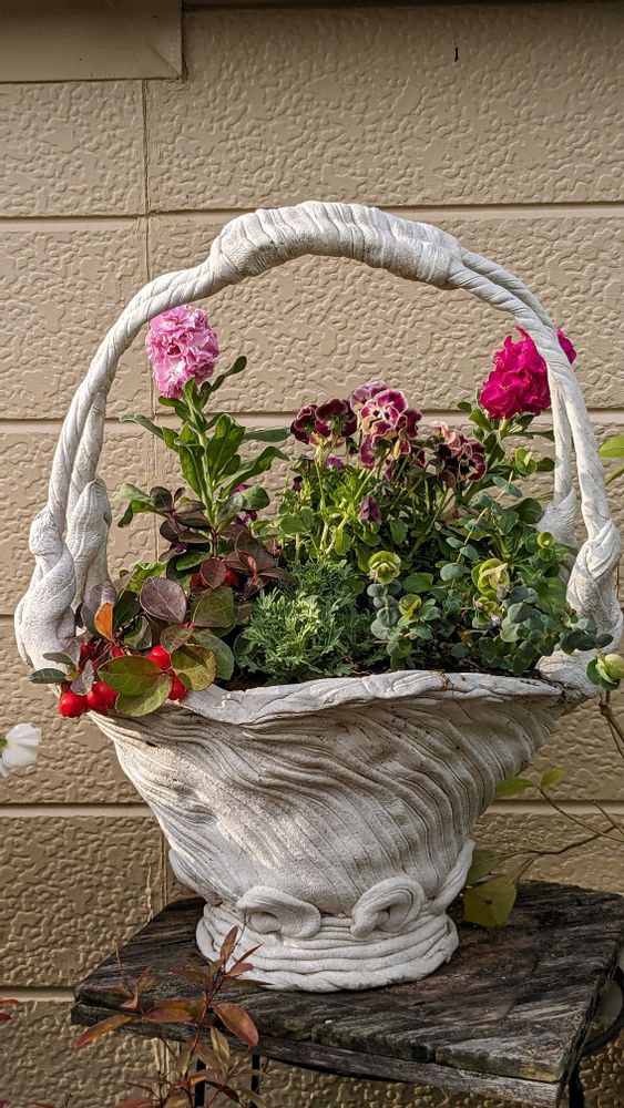 安い花🏵️🌸🌼でも寄植えが下手でもさまになる、便利な鉢なのよ。