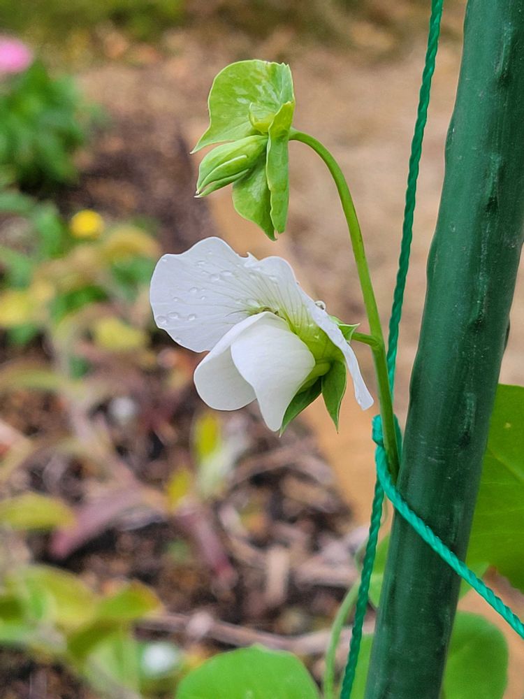 サヤエンドウさんのお花、マメ科に共通して可愛いですよネ🤍💚