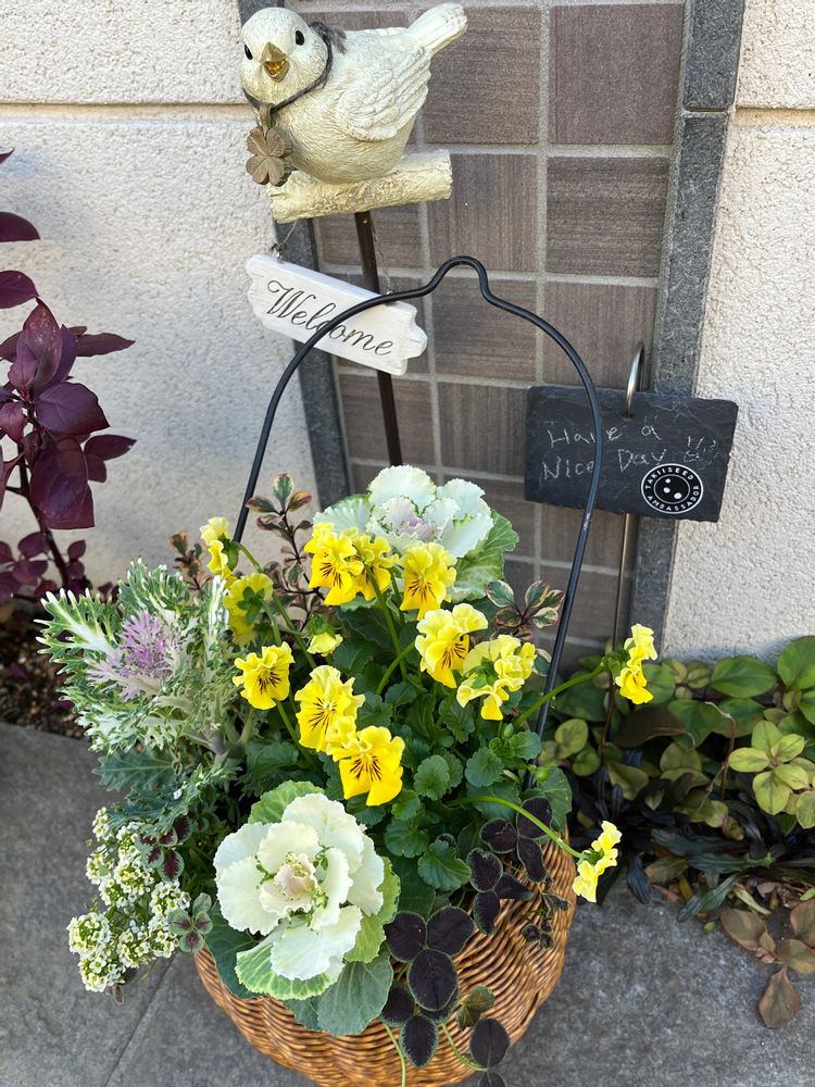 カゴ🧺との相性も良かったようで、この寄せ植え、お気に入りです✨