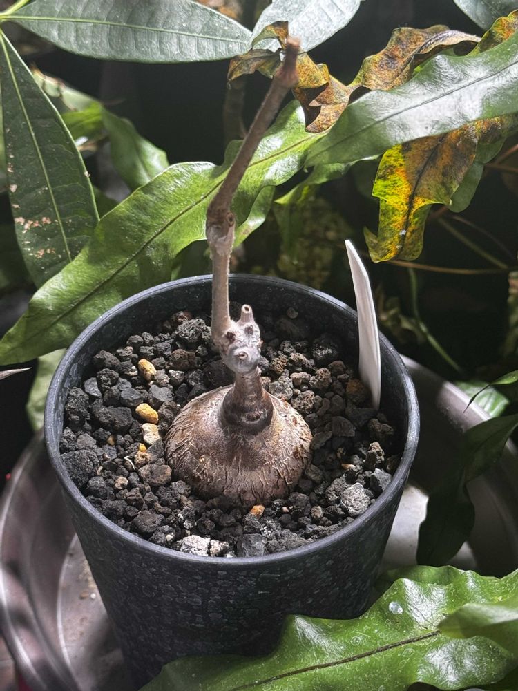 夏型で冬越しが塊根部分の植物って、完全に断水すると、細根が枯れちゃうから、月に一回だけ土の表面を濡らす程度にお水をあげてる。