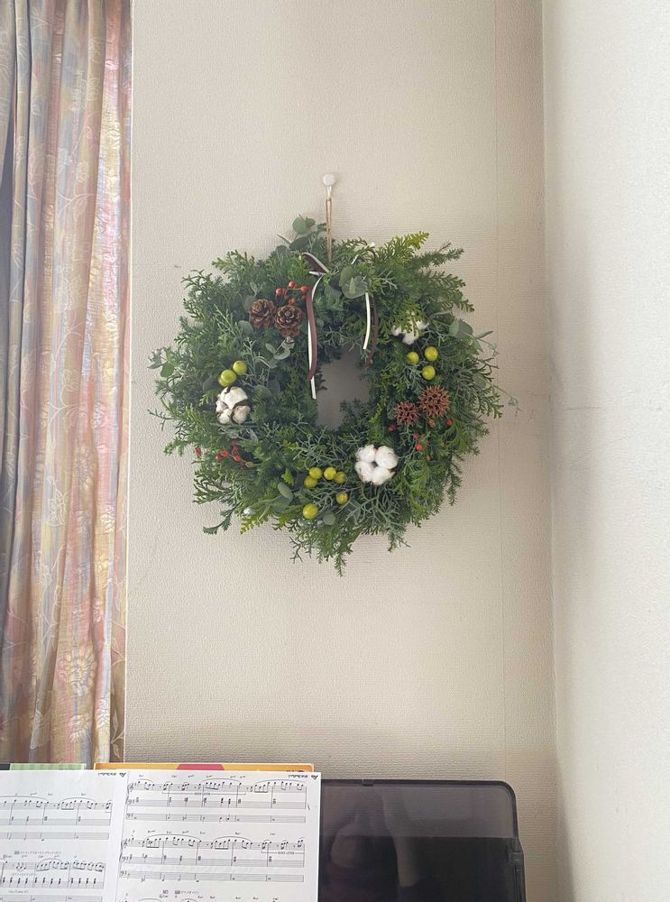 ボランティア仲間に教えてもらってリースを作りました。