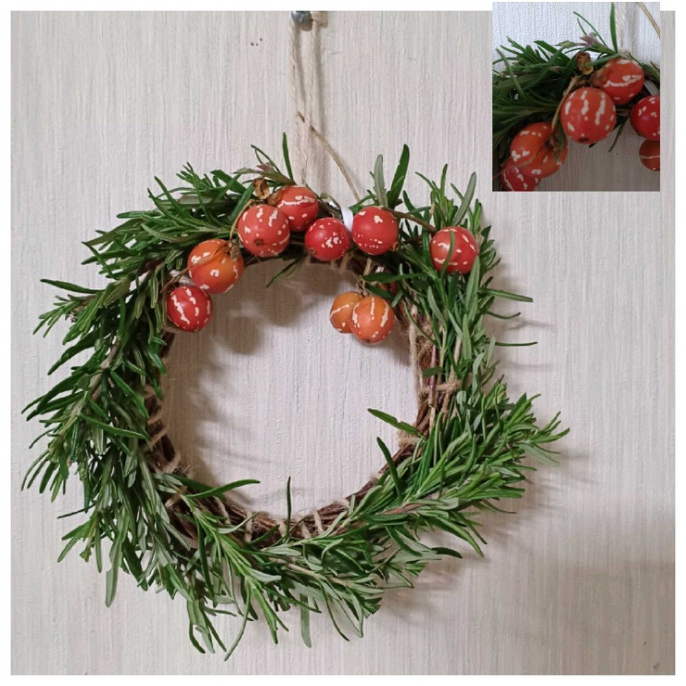 せっかくなので、乾燥するまでローズマリーとリースにして飾ることにしました✨🎄✨