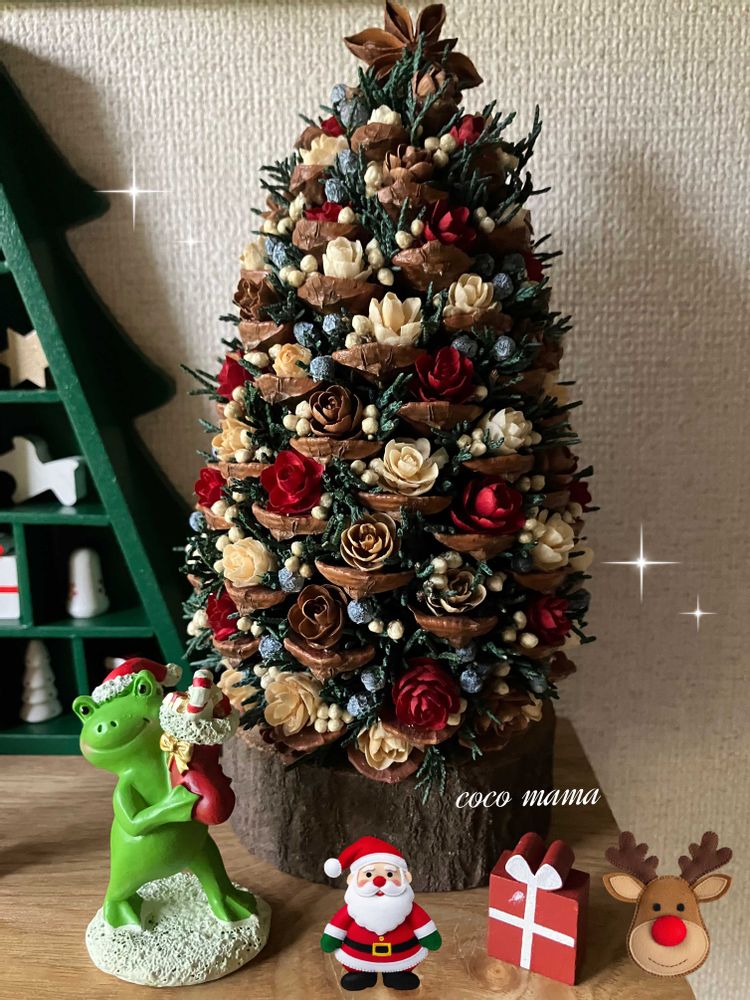 松ぼっくりとブリザーブドフラワーを使ったツリーもめっちゃ素敵だよ(ღ*ˇˇ*)ෆ ✨🎄✨