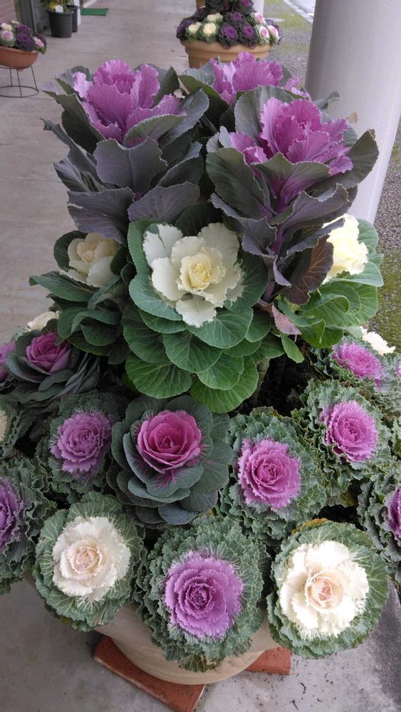 館内の外に、皇帝ダリア・葉ボタンが素敵でした✨💓🥰