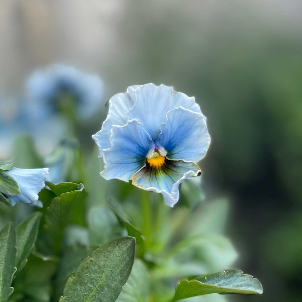 園芸店で売っているような黄色とか紫とか白とかのイメージだったので、(園芸店のビオラも十分綺麗ですが)こんな透き通るような水色の品種があることに驚きました!