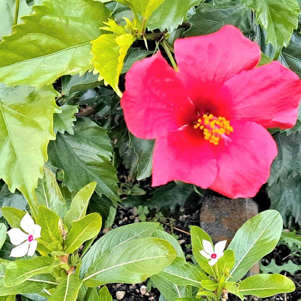 庭,ニチニチソウ,ハイビスカスの投稿画像