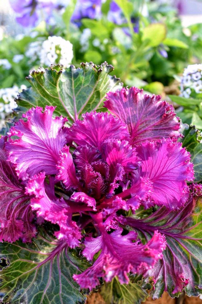 濃いピンク色の葉牡丹は鮮やかで目👀を引きますね。