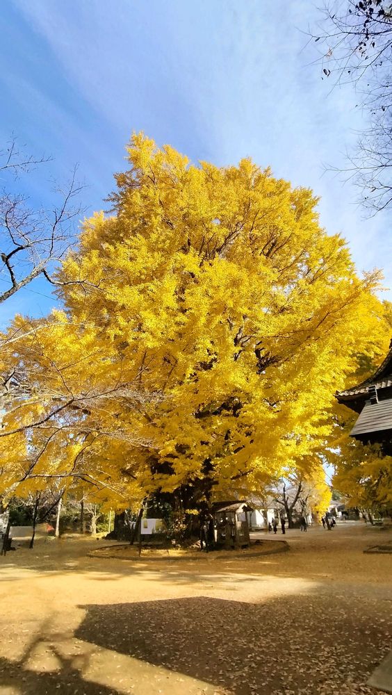 千年イチョウの黄葉、素晴らしいですね👍、未だ散っていないように見えます。
