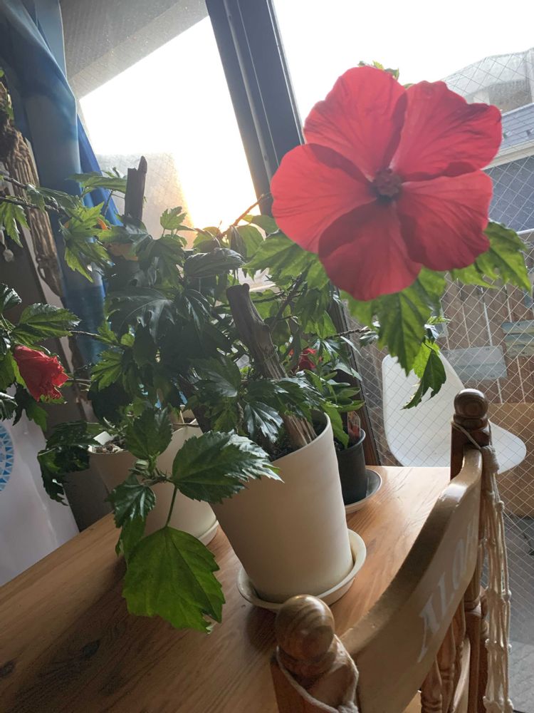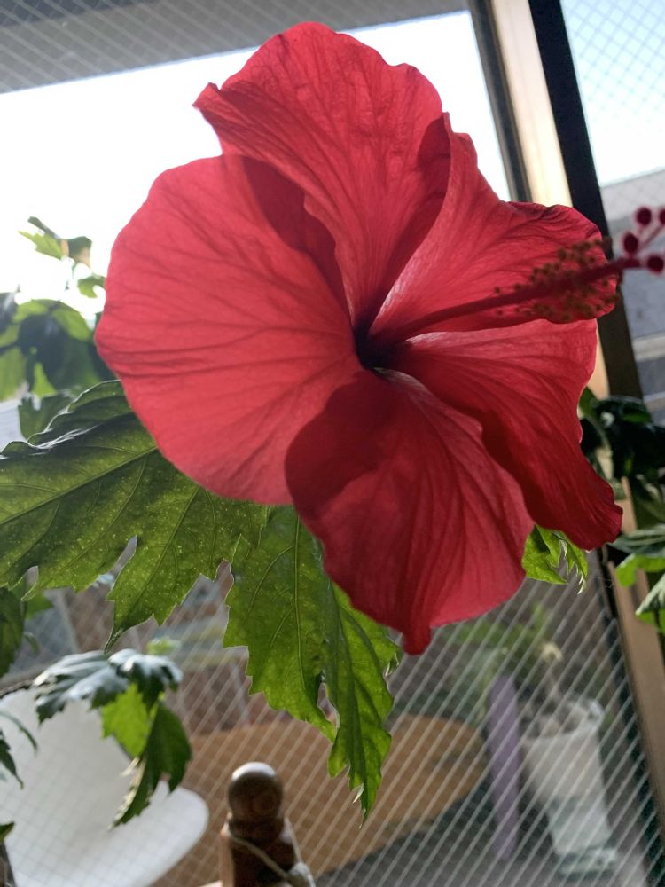 こんばんは(*∩ω∩)🌃ハイビスカス🌺かわいい🥰💕造花みたいな綺麗な赤‼️