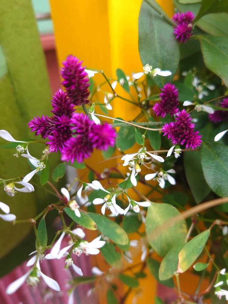元気な千日紅・千紅花火さん😊🩷可愛い✨ユーフォルビア・ホワイトラブちゃんとのコラボレーションがたまりません😍