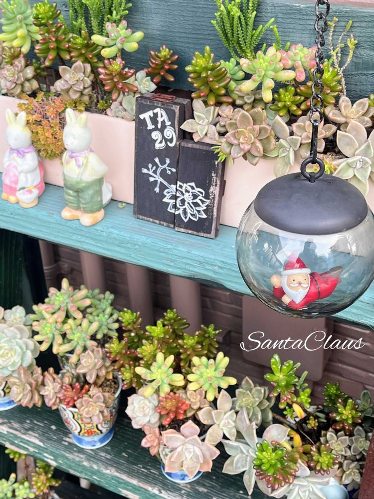 昨日はソーラーライトをたくさん買いましたが以前買って点かなくなってしまったライトも中にサンタさんを入れて再利用してます🎅😅