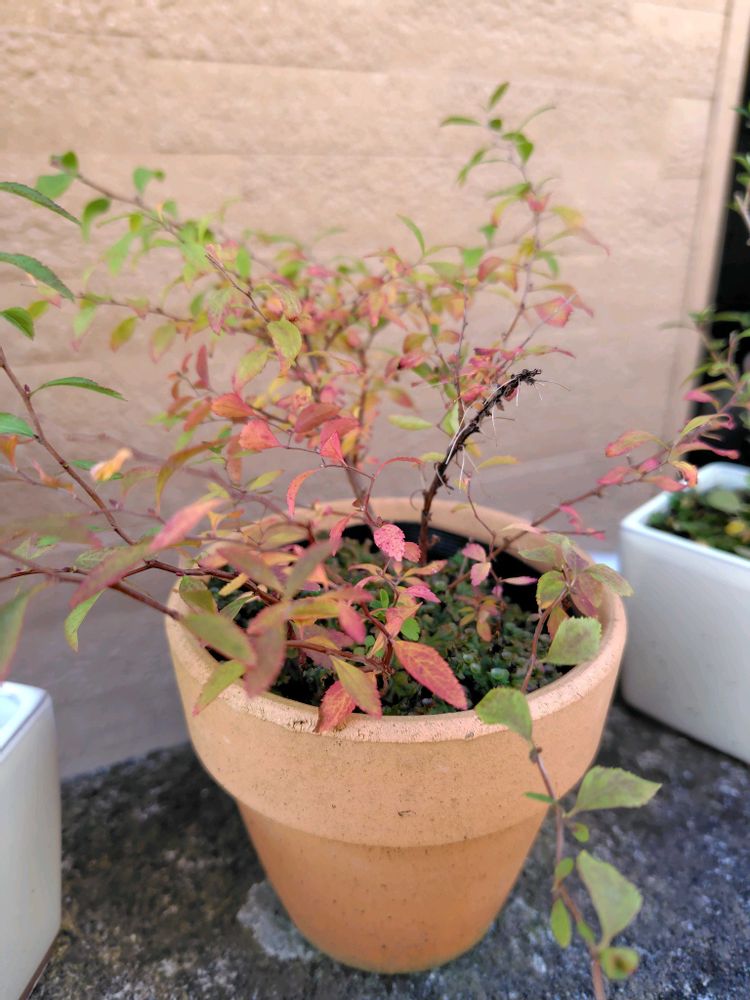 ②メストクレマ マクロリズム(だと思う)にユキヤナギがこぼれ種で育ってます。