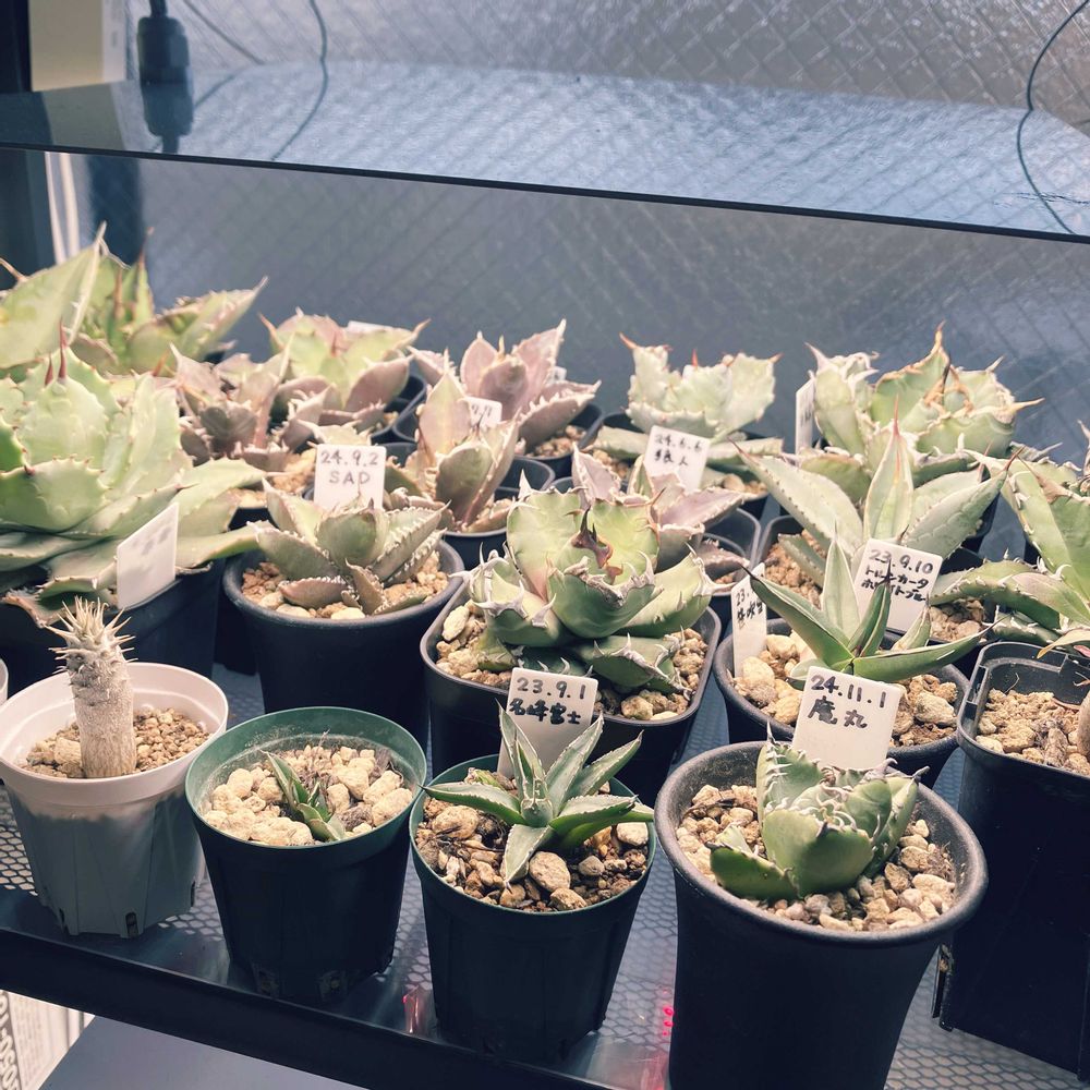 2017年より多肉植物にハマり中。 ヘンテコな形大好き。 普及種からレアなものまで心に刺さった植物を収集中。 アガベは丸っこいボール型や低重心タイプが好き 多肉植物に癒される日々。