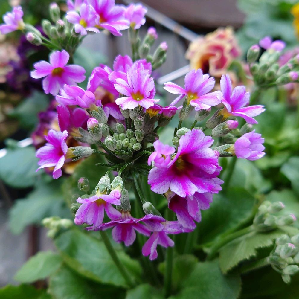 タグ見てビックリ〜実はサクラソウと思ってた〜調べたら中国原産のサクラソウの仲間で和名は「ケショウザクラ」納得しちゃいました🤭