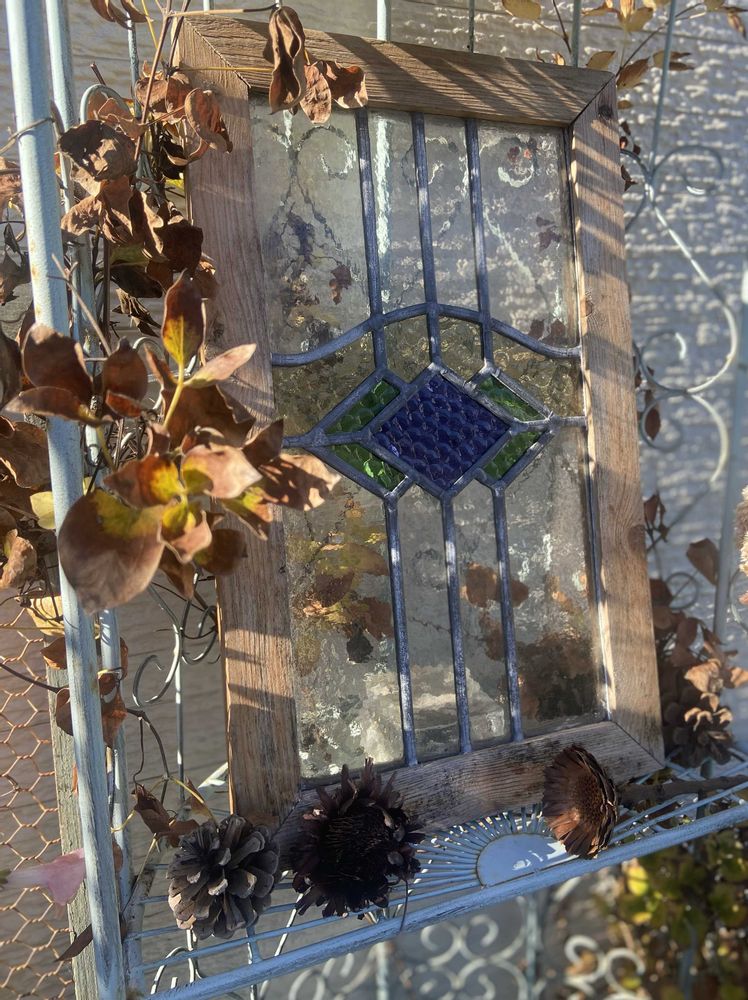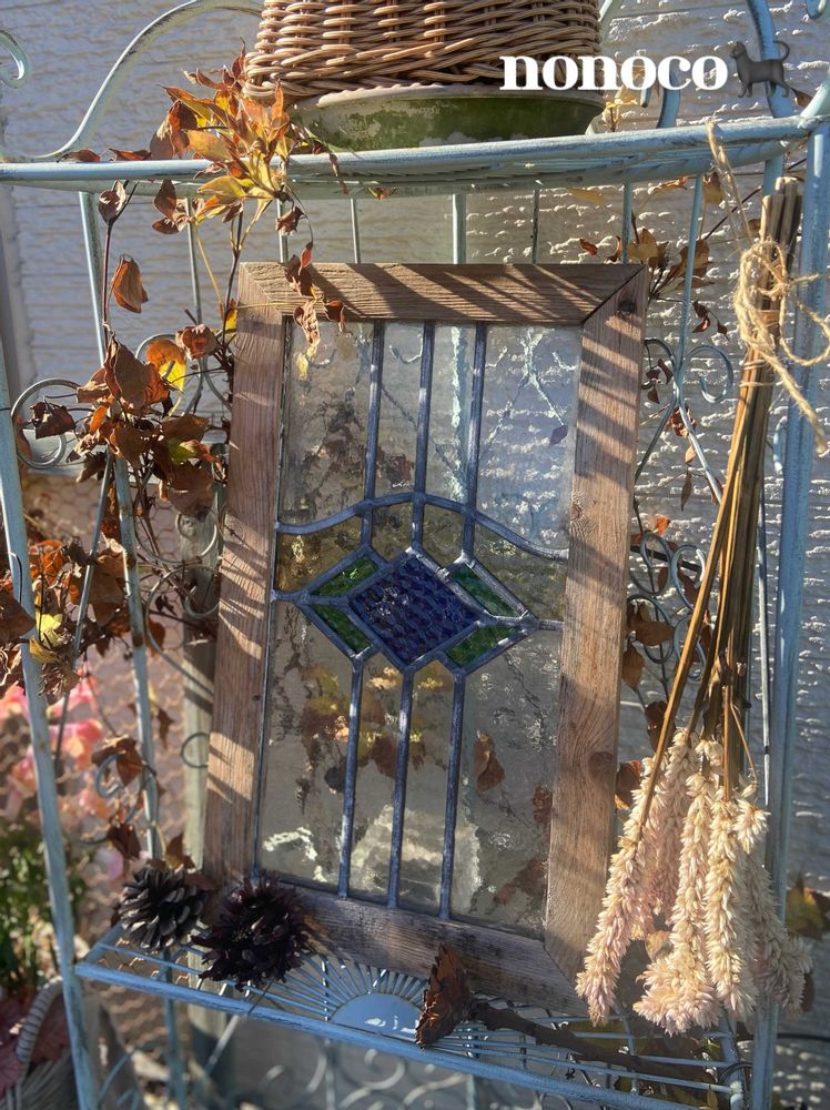 ①②ステンドグラス周りのアイアン棚に絡ませたクレマチス