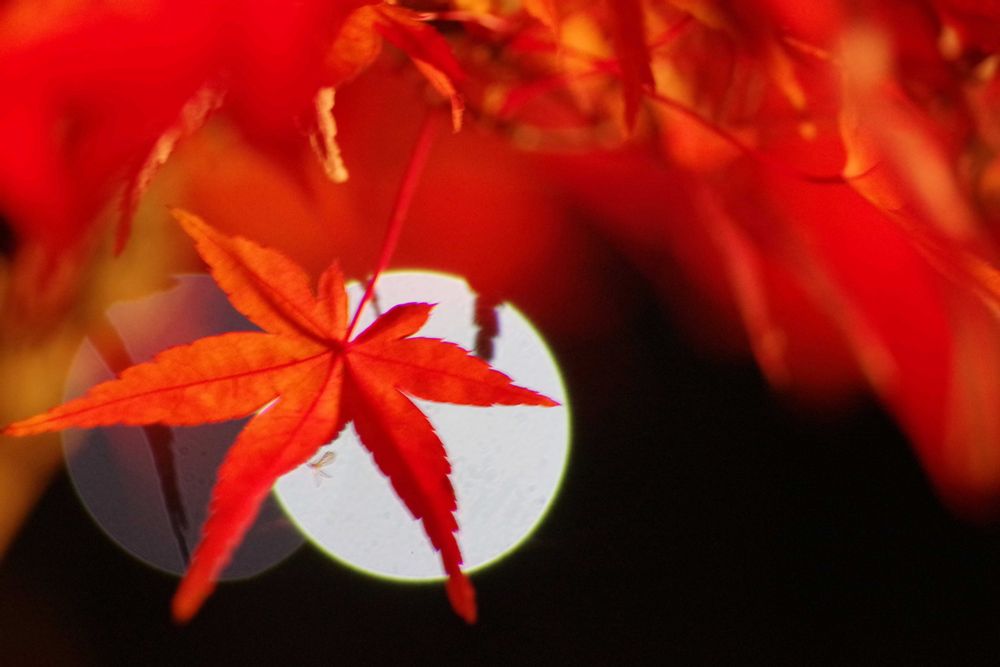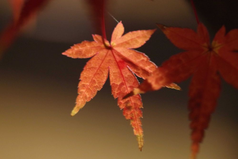 庭の2メートルくらいの小さな紅葉がライトアップされてる…ってか…