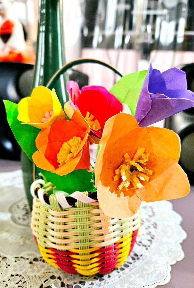 特に折り紙の花と編まれたカゴが良いですね〜🤗