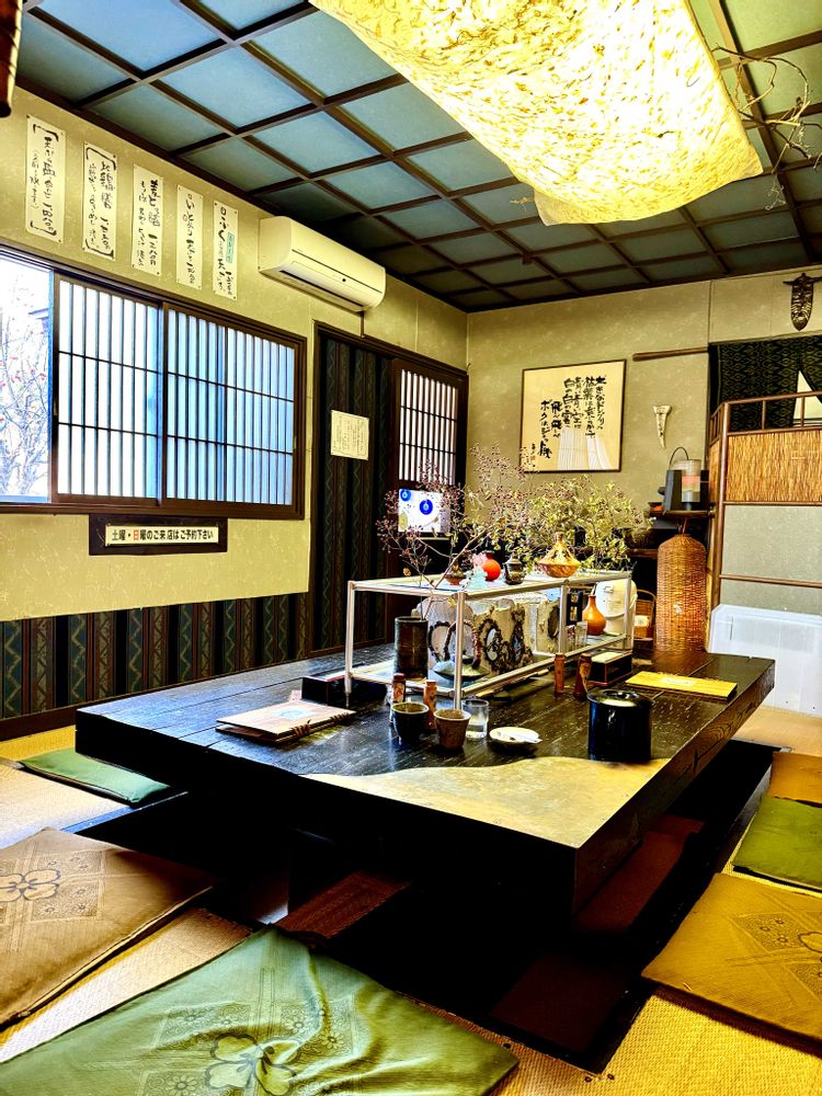 お蕎麦絶品だったようですね😋🎶とても風流な店構えと思ったら中はまたまた個性的❣️展覧格子とはなんぞや🤔と思っていたら沢山旅行されて買った品々なんですね🤗テーブルは枕木?お蕎麦からお店の中まで店主のこだわりのありそうなお店ですね😍そしてそう言うお店さがしをされて連れて行ってくださるご主人さまがいっそう素敵な方だと思いました➰❤️🎵