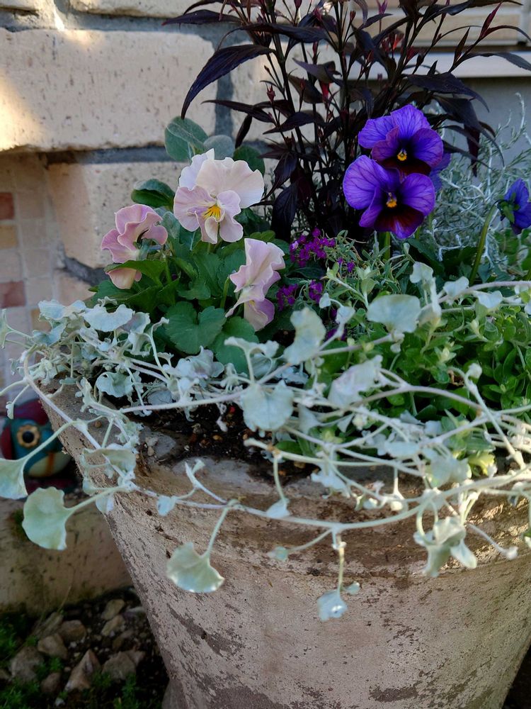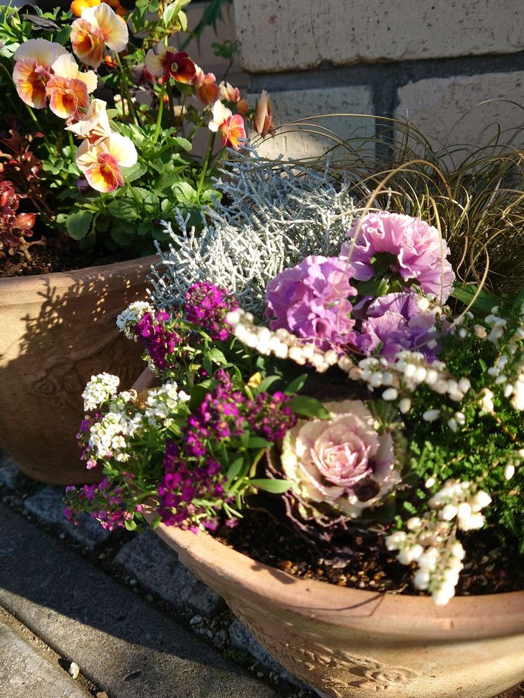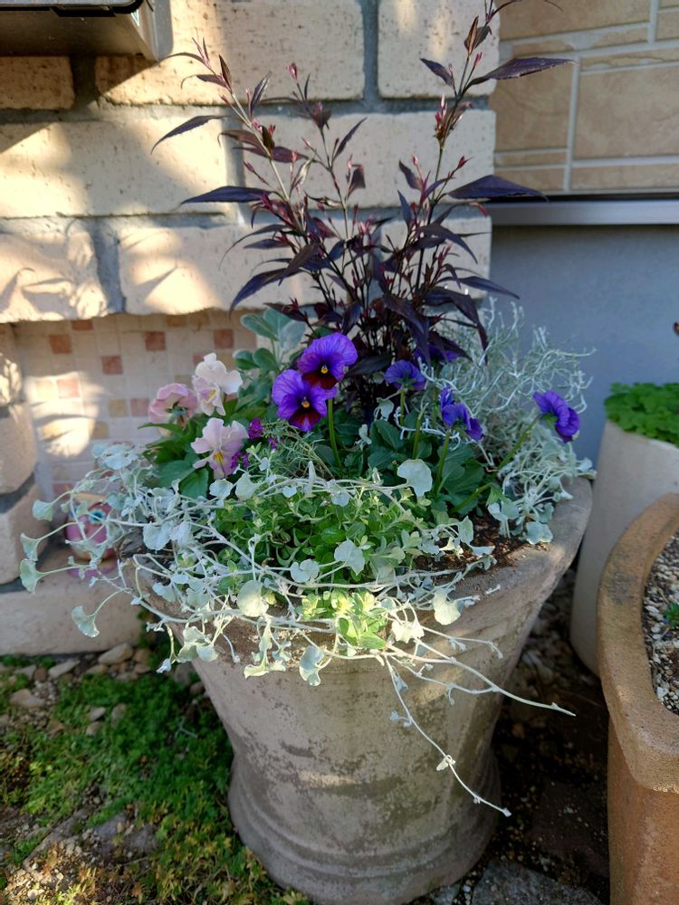 枯れたままの鉢を並べていたのをやっと寄せ植えしました😂今年は暖かな日があったので助かりました