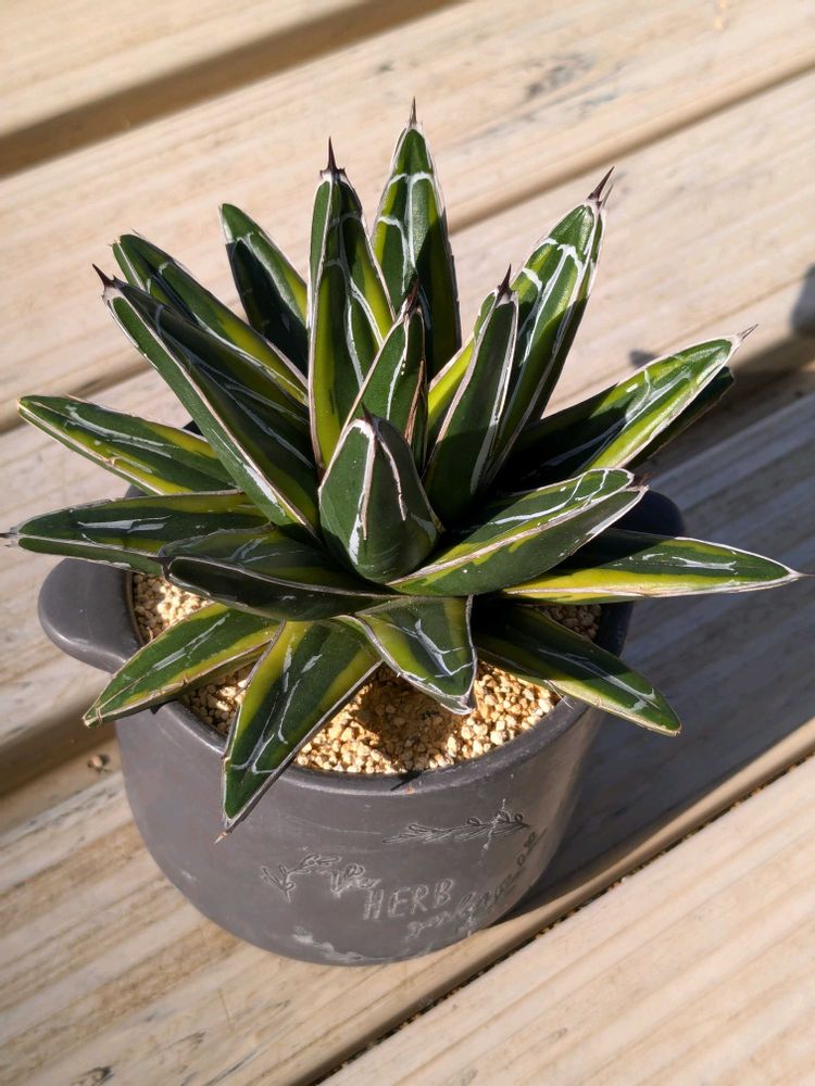 ②アガベ笹の雪(フクリン斑)さん❣️結構トゲが痛かった〜😱