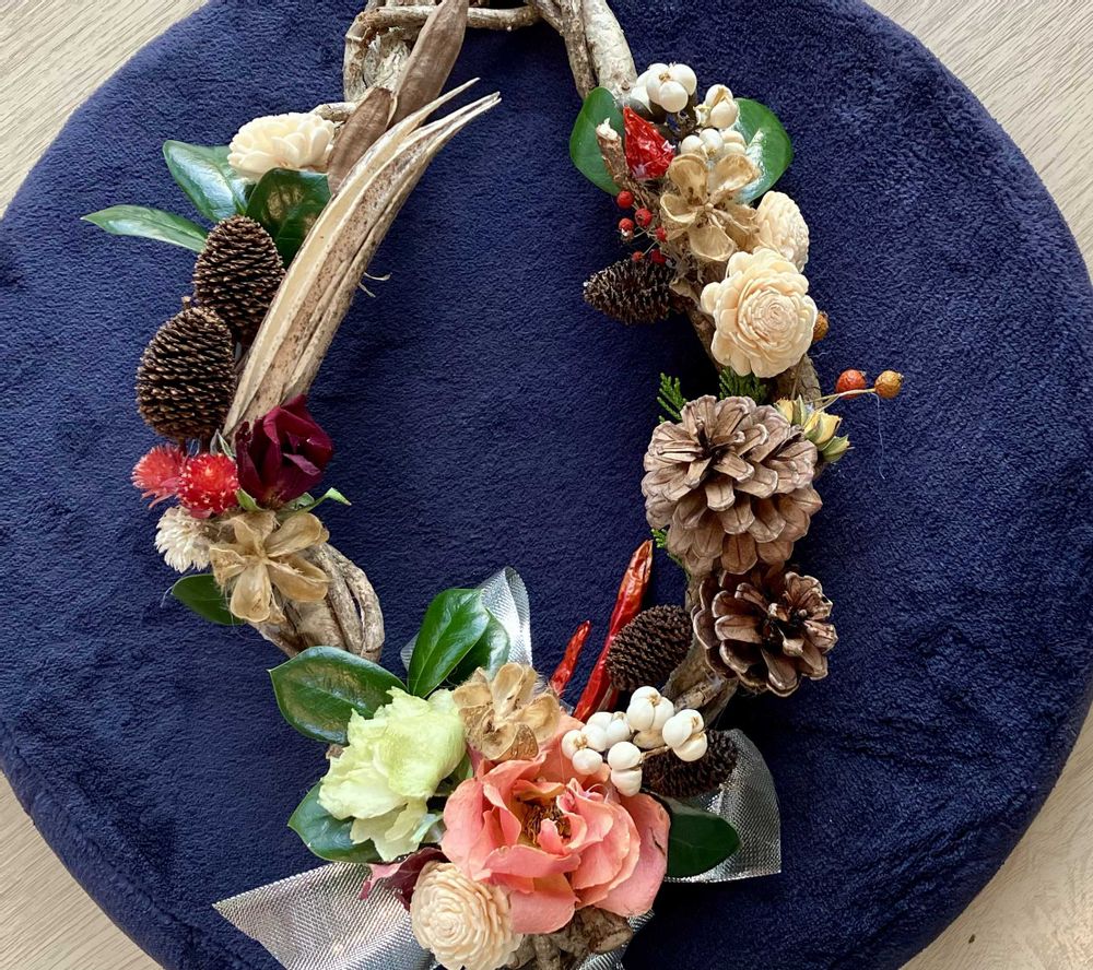 クリスマスリース作りに参加しました。出来たてのホヤホヤです。