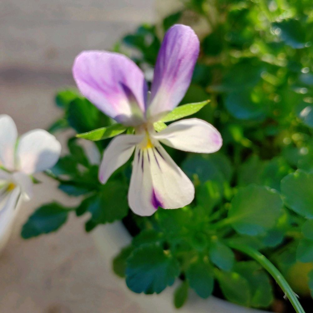 ウサギ耳の小さなビオラ コラボレーション 同じなのに微妙に耳部分の花色が変わってきていて綺麗です💜🩵