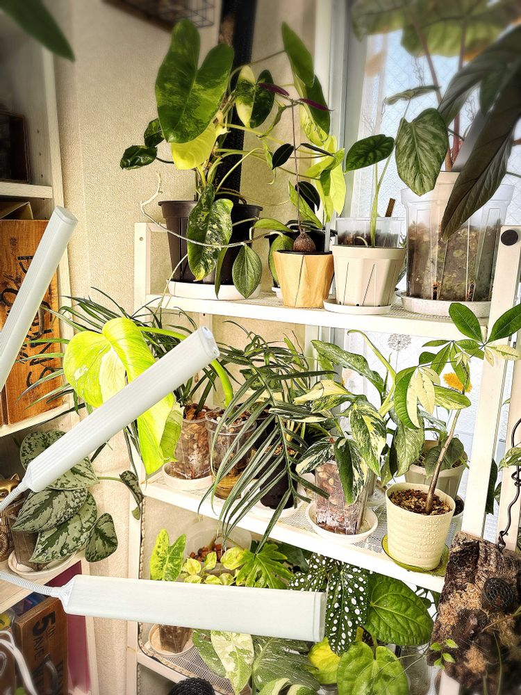 2025.8月に某サイトで購入した【アロカシア チャイ】の 突然変異?なんだろう 購入時、元々有った葉を(1枚目の葉)として、 下から新たな葉が出てきてる状態で到着しました(2枚目の葉) こちらに来て初めて出てきた葉に異変が。。 育て始めて出てきた初めての3枚目、4枚目 (途中から、斑1、斑2、、と続きます) どこまでこの謎の斑入葉が続くのか、 いや止まるのか……記録していきます
