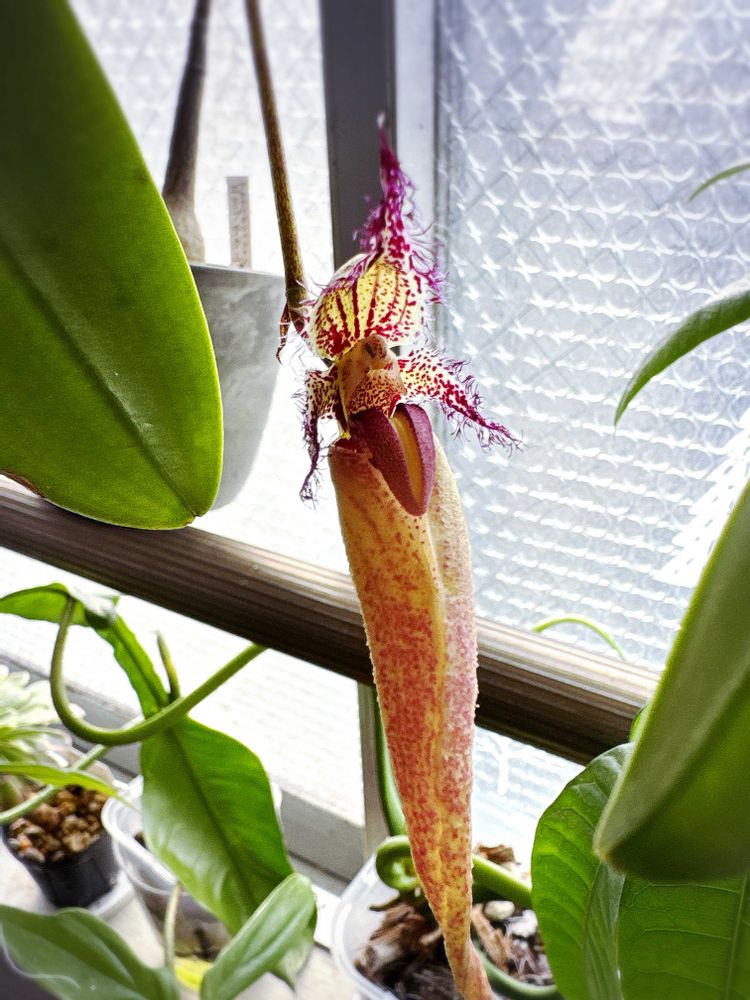 今日何気に窓際のコルク着生の蘭にお水やりをしようと、ふと見ると何とお花が‼︎