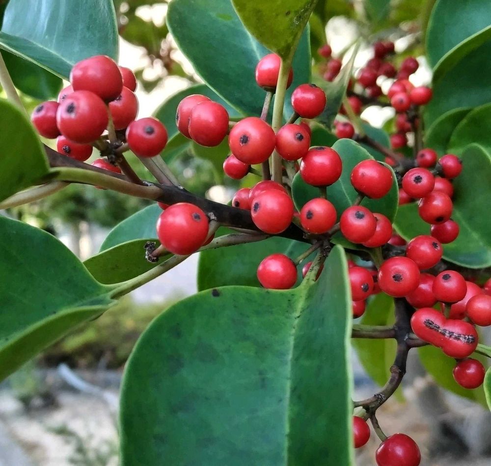 ③④は1ヶ月前に撮ったものです。オレンジ色の実は綺麗な赤になっていました❣️