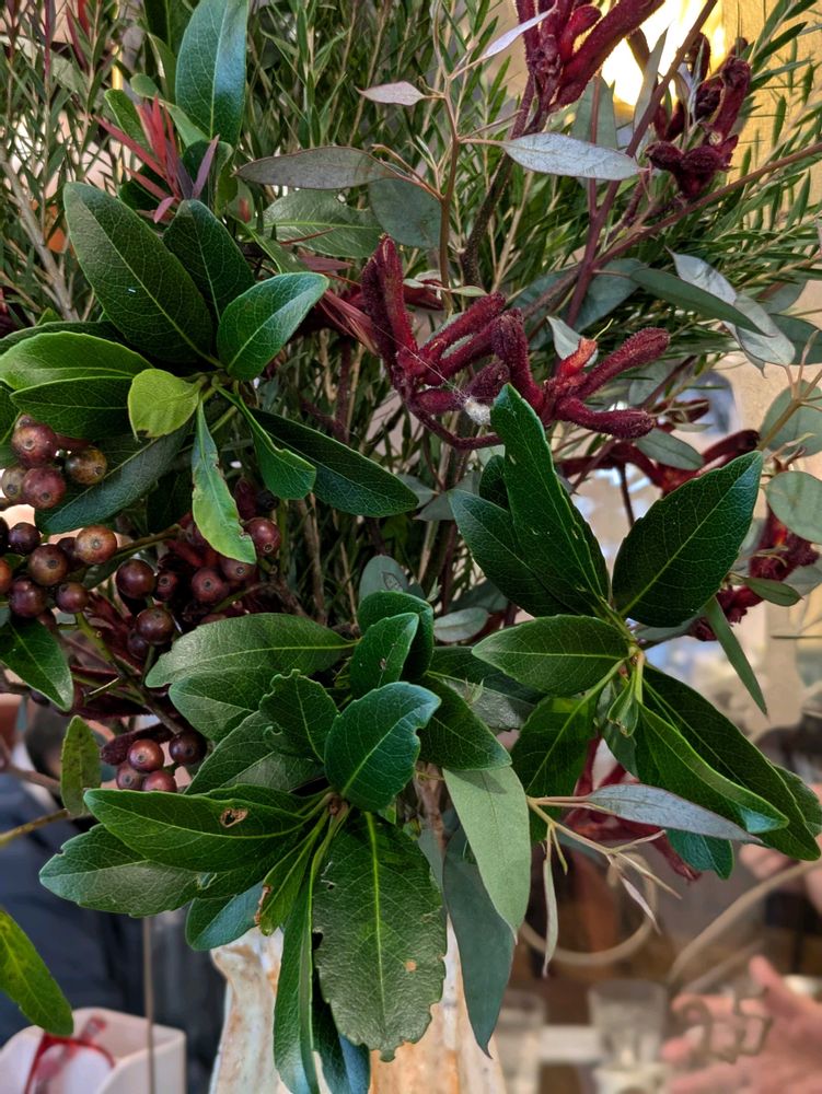 ①カンガルーポー?等を使った生花 喫茶店で カンガルーポー(アニゴサントス)別名キャッツポー ヘモドラム科 アニゴサントス側