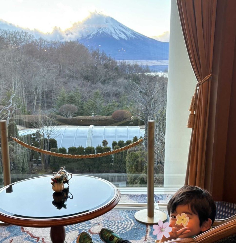 息子がが山中湖のホテルから
