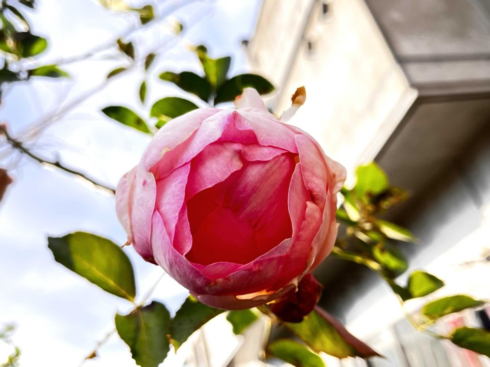 年末年始の剪定・誘引に備えてシュートが折れないように倒して麻紐で括りつけたら、やっとお顔が見えました⸜(*ˊᗜˋ*)⸝︎💕︎💕