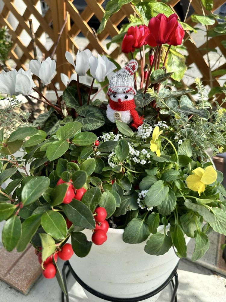 お久しぶりの投稿です。クリスマスバージョンの寄せ植えやってみました。